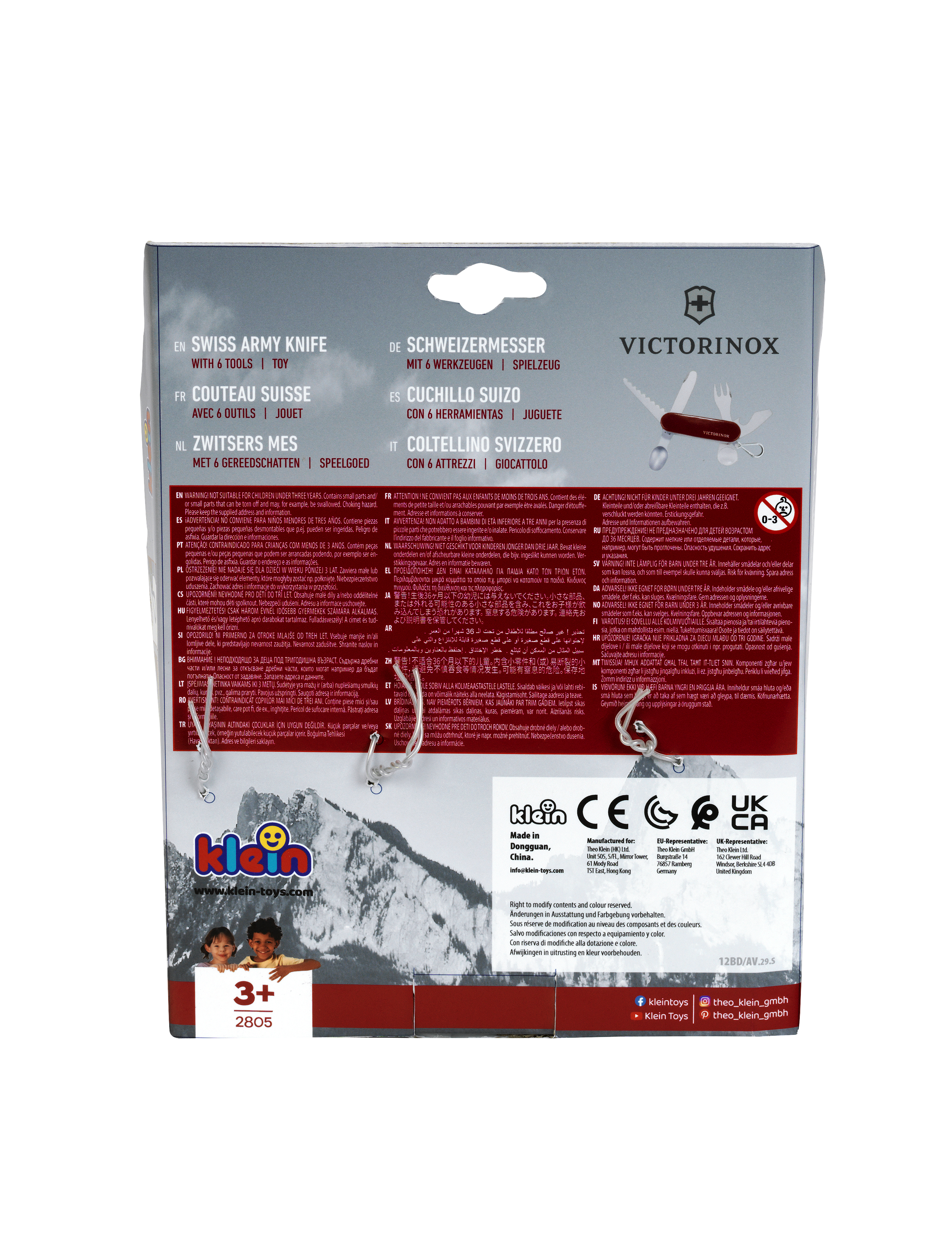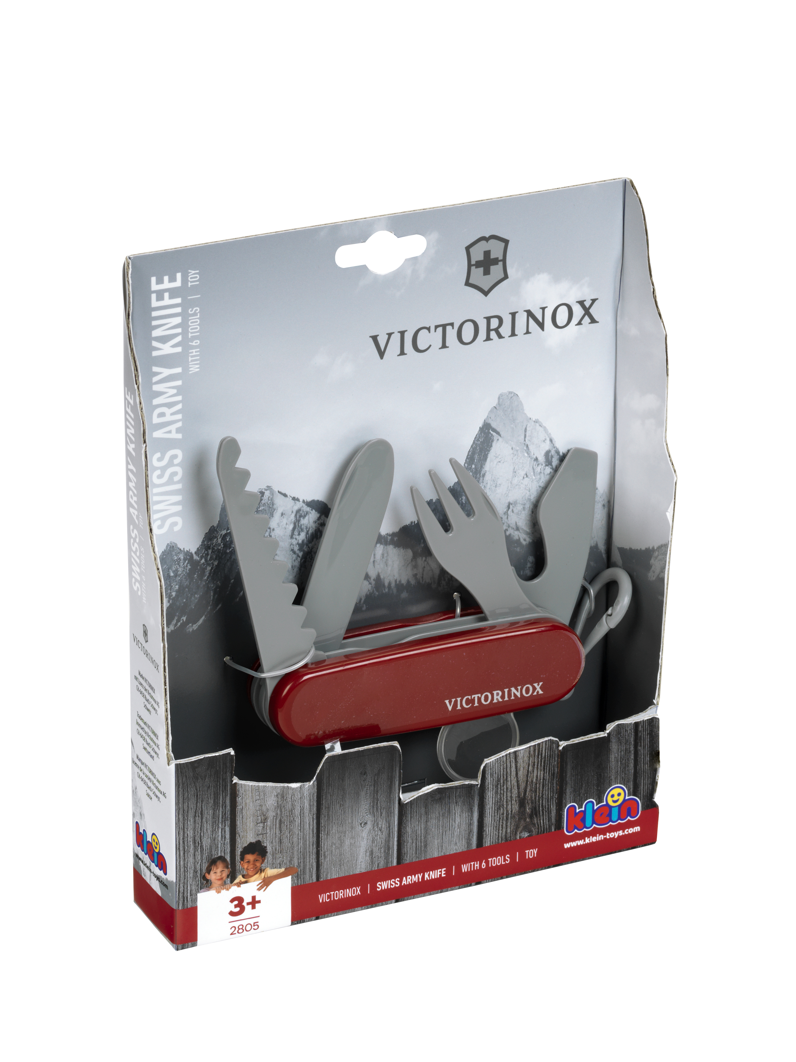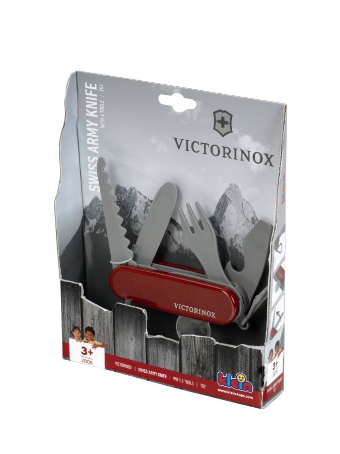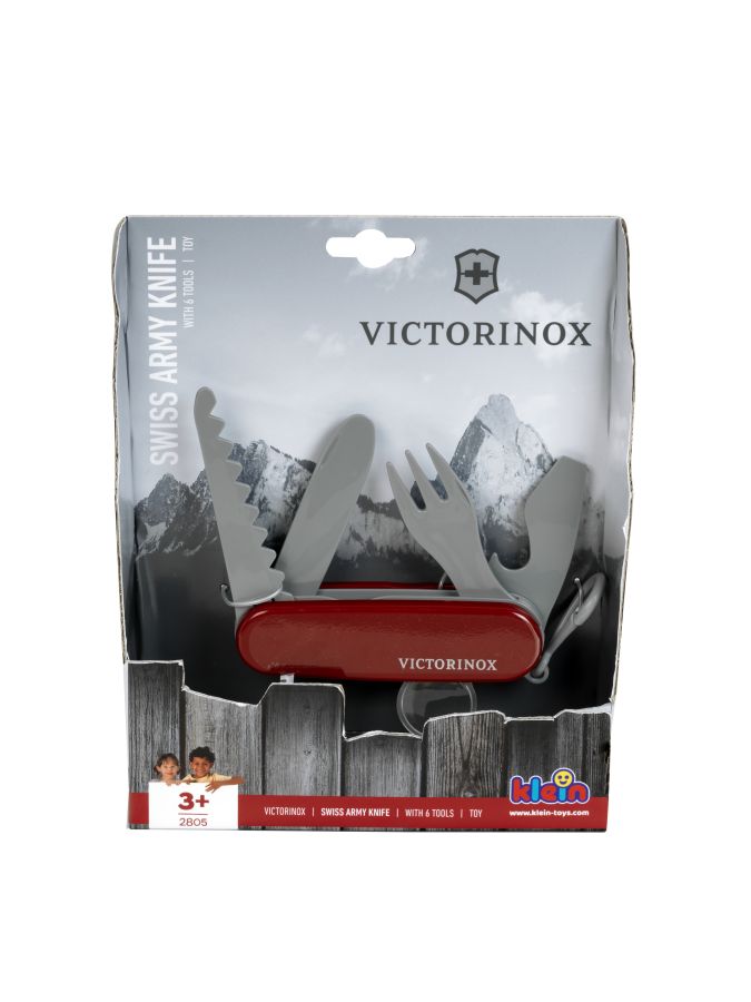 Scyzoryk jest zabawką powstałą na licencji firmy Victorinox, dlatego też jest wierną kopią tego znanego scyzoryka. Szwajcarski zabawkowy scyzoryk został wykonany z tzw. „szwajcarską precyzją”, dlatego jest solidny, a także zadbano w nim o wszystkie szczegóły oryginału. Posiada czerwoną obudowę ozdobioną charakterystycznym logiem Victorinox. Dzięki przymocowanemu do obudowy karabińczyka, dzieci mogą przyczepić zabawkę na przykład do paska spodni. Wewnątrz obudowy zabawki znajduje się 6 przyrządów w kolorze srebrnym. W scyzoryku znajduje się łyżeczka, szkło powiększające, widelczyk, nożyk, otwieracz do butelek, mała piłka. Wszystkie te przyrządy są wykonane z plastiku, pozbawione są ostrych krawędzi i są bezpieczne dla dzieci, oczywiście zawsze gdy zabawa odbywa się pod opieką osoby dorosłej. Zabawka w postaci tego scyzoryka pozwoli dzieciom mieć takie samo narzędzie, jakiego używają ich rodzice, czyli najbardziej rozpoznawalnego scyzoryka świata. Zabawka zapewni dzieciom mnóstwo wrażeń i realistycznych doświadczeń w całkowicie bezpiecznych warunkach, a dzięki wysokiej jakości będzie on służył przez długi czas.