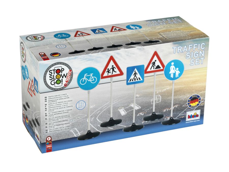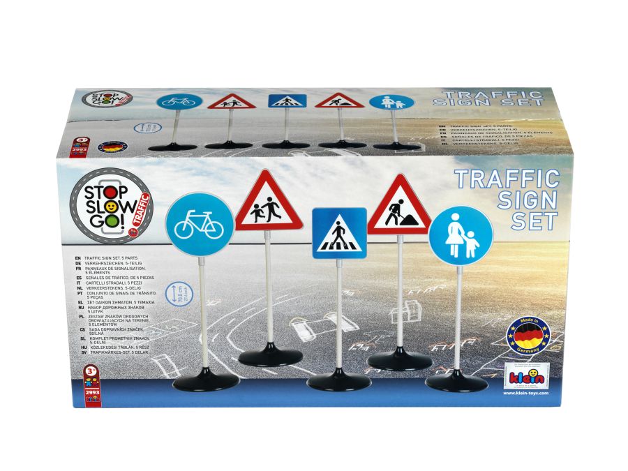 Znaki drogowe duże – zestaw 2 pochodzą z bardzo popularnej serii związanej z bezpieczeństwem ruchu drogowego (BRD), dlatego dają dzieciom wiele możliwości zabawy i nauki. Dzięki tym zabawkowym znakom nauka ruchu drogowego to świetna zabawa w szkole podstawowej, przedszkolu czy na przydomowym podwórku. Znaki mają 73 cm wysokości. Znaki drogowe marki Klein to doskonała zabawa dla początkującego przyszłego kierowcy. Zestaw przedstawia znaki (A-14) Roboty drogowe, (A-17) Dzieci, (C-13) Droga dla rowerów, (C-16) Droga dla pieszych, (D-6) Przejście dla pieszych. Zabawka wykonana jest z wysokiej jakości materiałów i wiernie odzwierciedla prawdziwe znaki drogowe, co z pewnością spodoba się wszystkim dzieciom zainteresowanym tematyką drogową, a ich edukacyjna forma pomoże dzieciom już we wczesnym ich etapie rozwoju poznawać zasady ruchu drogowego.