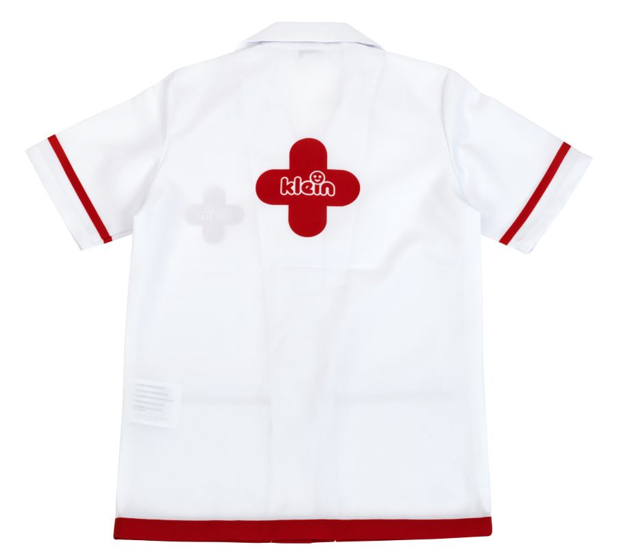 Fartuszek lekarski „Prestige” wykonany jest w uniwersalnym rozmiarze. Nadaje się dla dzieci od 4 do 8 lat niezależnie od płci. Tkanina z której został starannie uszyty jest bardzo dobrego gatunku. Wszystkie brzegi są ładnie podszyte, zapinany jest na rzepy. Fartuszek posiada dwie pojemne kieszenie, do których z pewnością zmieści się dużo akcesoriów lekarskich. Dodatkowo nadrukowane na nim zostały kolorowe ilustracje atrybutów każdego doktora. Taki ubiór przysporzy wiele frajdy dziecku, które chce uzdrowić wszystkich najbliższych lub przeprowadzić podczas zabawy operację ratującą życie... Fartuch lekarski będzie doskonałym uzupełnieniem innych zestawów lekarskich marki Klein. Nie ma dziecka, które nie wiedziałoby do czego służy strzykawka, termometr, czy plaster i które nie próbowałoby naśladować działań lekarza badając domowników, czy podczas zabawy swoje pluszaki. Właśnie do tego celu doskonale nadają się wykonane z dbałością o szczegóły akcesoria lekarskie firmy Klein. W tej serii zabawek mamy szeroki wybór zestawów z większą lub mniejszą ilością akcesoriów oraz pojedyncze produkty jak np. metalowy stetoskop czy właśnie ten fartuch lekarski. Cała seria wizualnie stworzona jest tak, aby mogli się nią bawić zarówno chłopcy jak i dziewczynki.