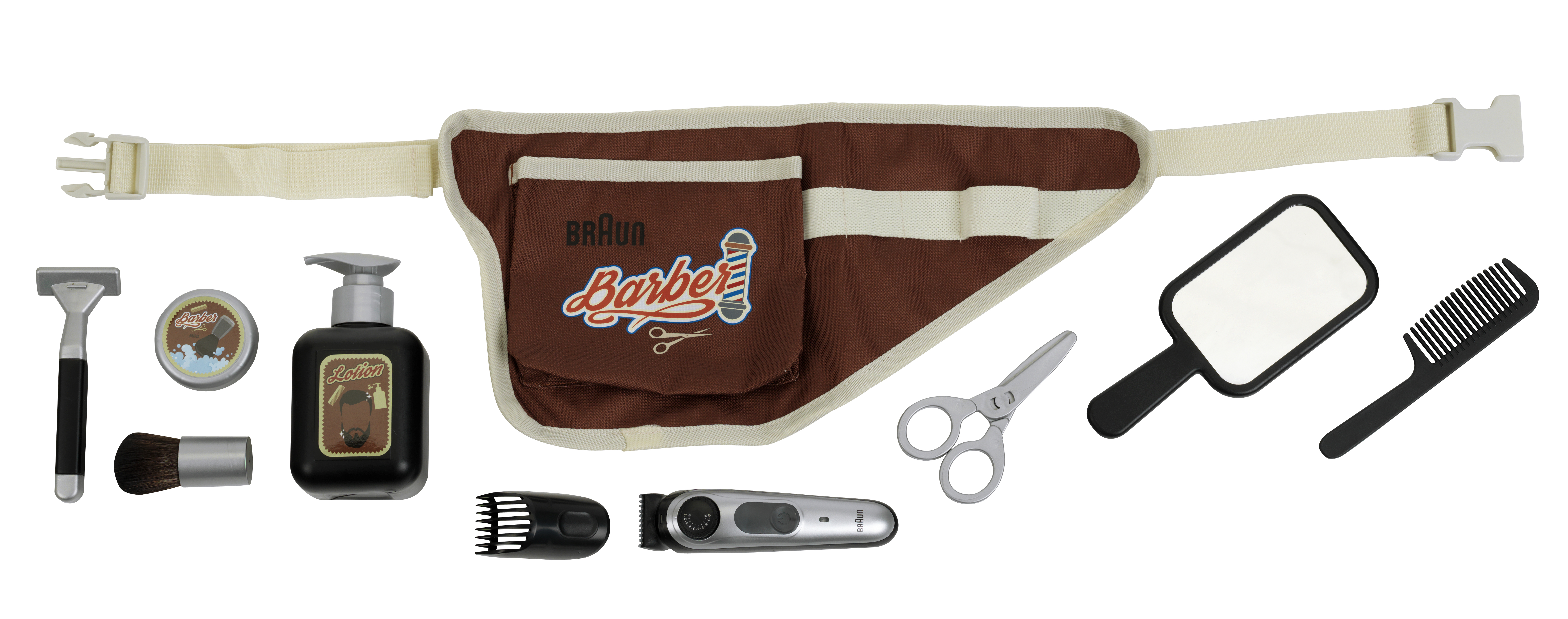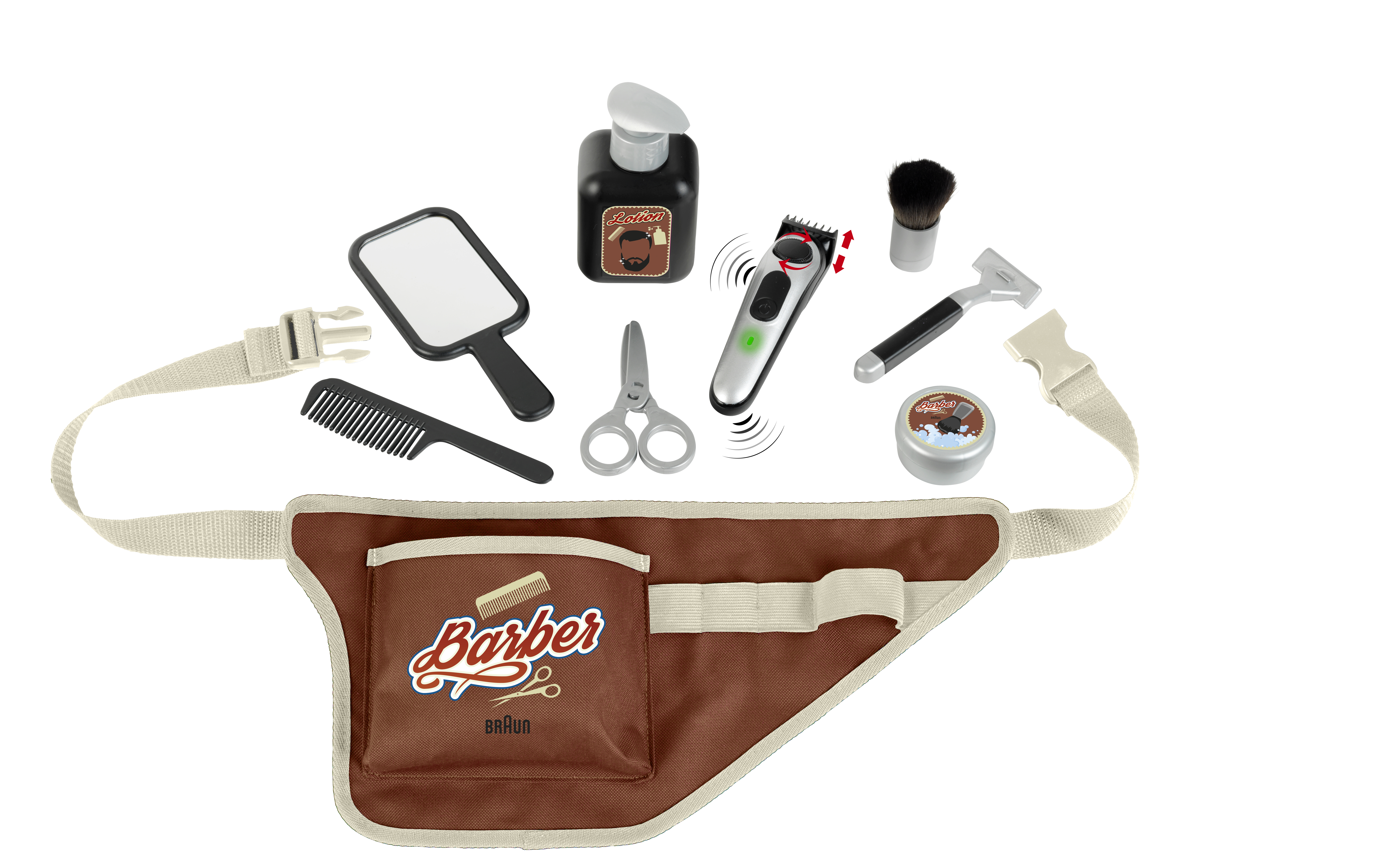 Jeśli masz to narzędzie to można z powodzeniem wyczesać lub ogolić misia, lalkę, tatę, wuja czy dziadka. Po prostu załóż torbę biodrową i jesteś gotowy do zabawy: po naciśnięciu przycisku trymer do brody brzęczy i gładko przesuwa się po policzkach czy brodzie. Nożyczki i zabawkowa maszynka do golenia na mokro również czekają na użycie do strzyżenia i golenia włosów, które pozostawia skórę gładką i miękką. Na dokładkę mali fryzjerzy mogą wyciągnąć puszkę i nałożyć krem na brody i twarze swoich klientów. Dzieci ćwiczą swoje umiejętności motoryczne, empatię i wyobraźnię podczas zabawy.