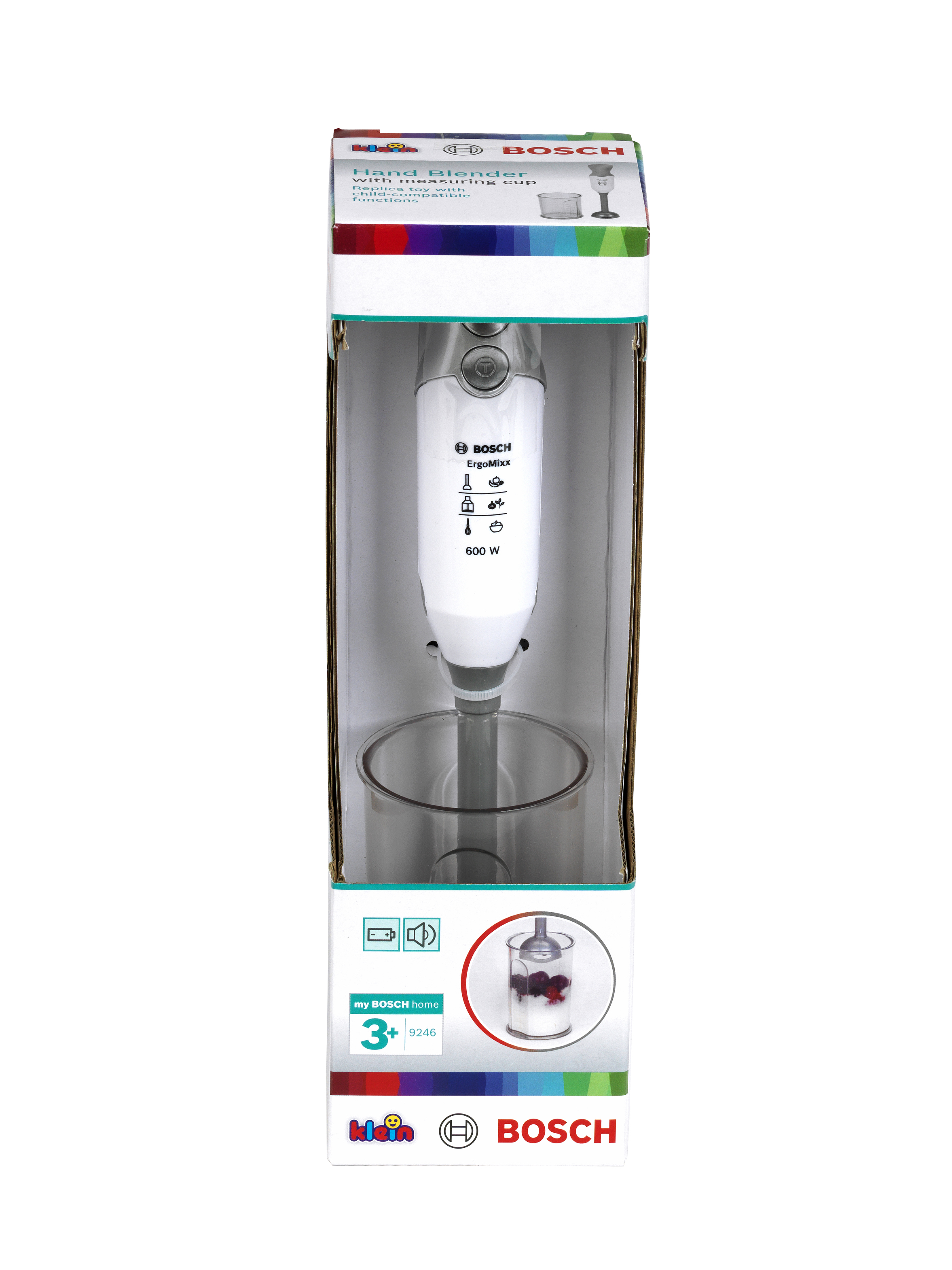 Blender Klein powstał na licencji Bosch, dlatego też są wierną kopią prawdziwego urządzenia produkowanego przez tę firmę. Firma Klein od lat produkuje odpowiedniki prawdziwych narzędzi i akcesoriów AGD, przeznaczone do zabawy dla najmłodszych. Zestaw składa się z ręcznego blendera oraz przezroczystego pojemnika z miarką (250 ml). Blender jest kopią urządzenia marki Bosch i jak cała seria urządzeń AGD jest w kolorze srebrnym. Końcówka blendera obraca się po naciśnięciu guzika, a jego nasadkę mieszającą można zdjąć, co nadaje zabawie jeszcze większego realizmu. Ważną zaletą zabawki jest nie tylko jej pełna funkcjonalność, ale również gwarancja bezpieczeństwa, gdyż wszystkie elementy zostały wykonane z plastiku. Materiały, są najwyższej jakości, a także bezpieczne dla dziecka. Zabawka pozwoli każdemu dziecku na naśladowanie rodziców w sposób bezpieczny i pełen dobrej zabawy. Wielkość wszystkich elementów i akcesoriów zestawu jest dopasowana do potrzeb i rączek dziecka. Zabawka z pewnością będzie również świetnym uzupełnieniem pozostałych zestawów kuchennych firmy Klein.